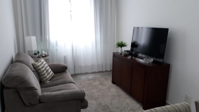 Apartamento reversível para 3 dormitórios (original) pois a sala foi ampliada. Prédio com portaria 24h, portão eletrônico, garagem coletiva porém suficiente e piscina.